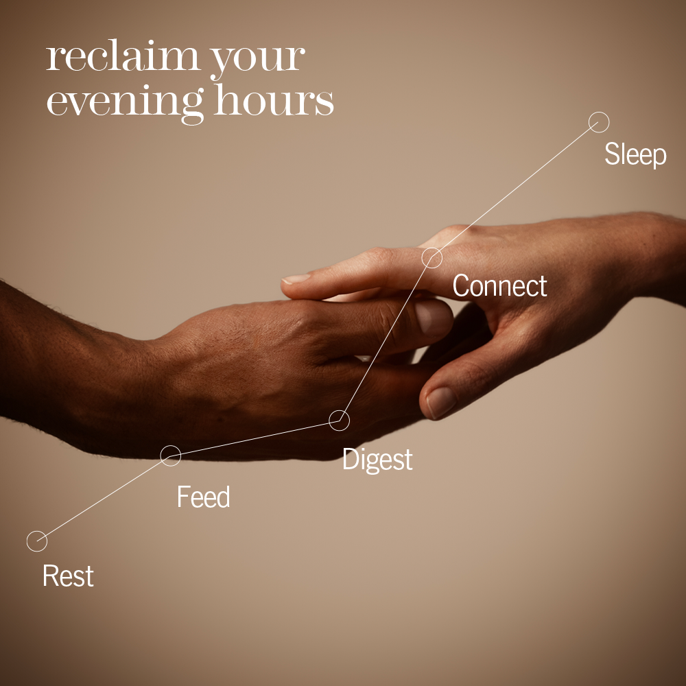 We've lost those precious hours between 6 pm and midnight. A time that should be for calmness, conversation, human connection, and stillness has been replaced by screens, rushed meals, more work late into the night, and nervous system overload. We want to bring you back to yourself, to a place where your body and home feels like a safe enough space to switch off and leave the day behind you.