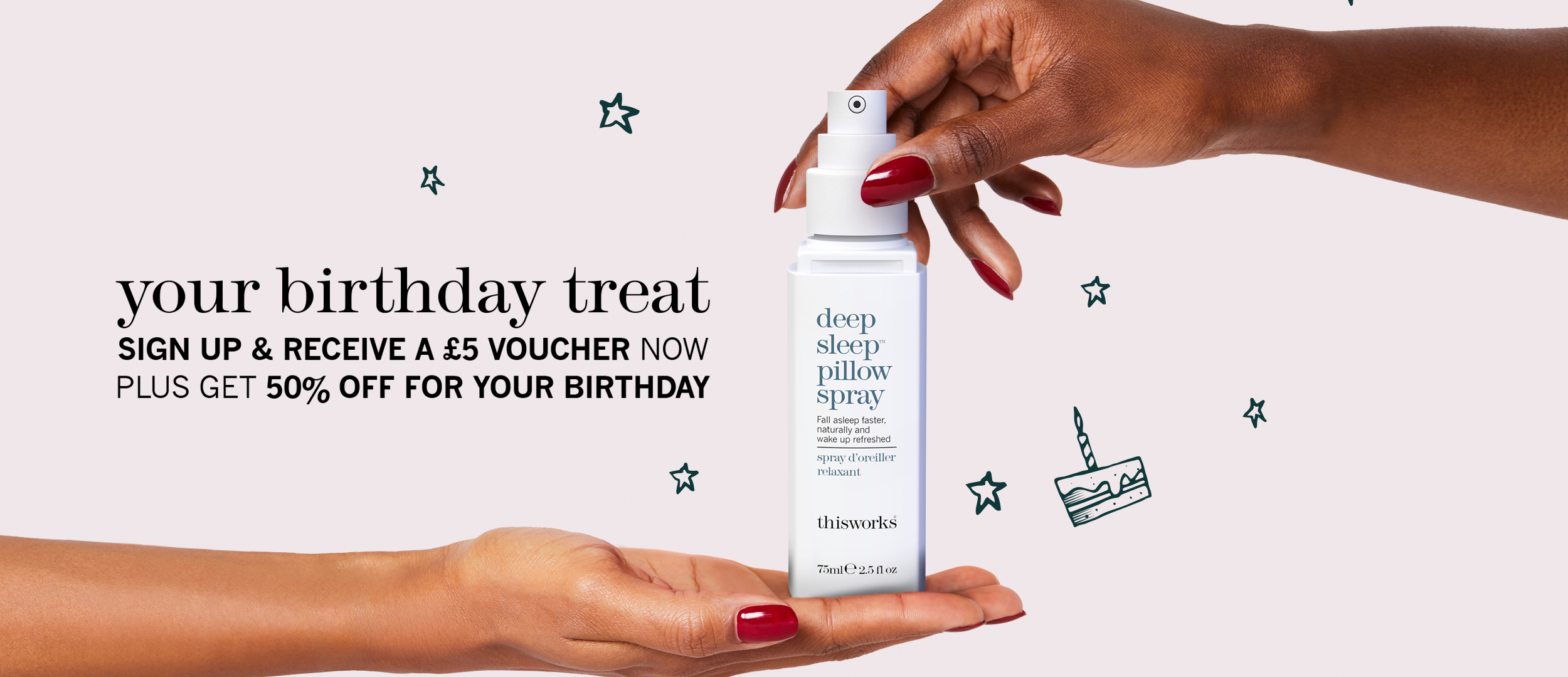 By signing up to our birthday promotion, you are signing up to receive our newsletter. You are able to unsubscribe from receiving these emails at any time. Once you have completed the sign up form, you will receive your £5 off voucher code for use on orders £15+ to the email address provided. This voucher code is valid for one use per customer only and will be valid for 28 days from date received. Near your birthday, you will receive an email with your 50% off discount code. The 50% discount is valid on one order per customer per year. You must sign up a minimum of 14 days before your birthday to be able to receive the voucher and/ or the discount for this promotion. This offer cannot not to be used in conjunction with any other offer. Not valid on Own Time fragrance, subscription orders or kits & bundles. Only one voucher code per order can be used.